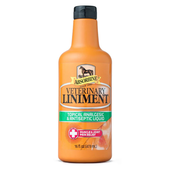 First developed in 1892, Absorbine® Veterinary Liniment has been trusted by generations of horse owners to relieve tired muscles and joints. Today, it remains the world’s best-selling horse liniment, still delivering the same potent blend of natural herbs and essential oils. From soothing aches and stiffness to treating common skin and hoof conditions, this versatile liniment is truly a “medicine chest in a bottle.” Rub directly into sore joints and muscles, or use diluted as a refreshing body wash. Available in a 16oz size.