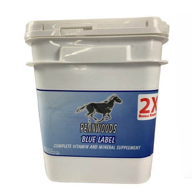 Pennwoods Blue Label 2X (Double Strength) by Pennwoods is a blend of concentrated ingredients formulated to nutritionally balance and enhance your horse's diet. Blue Label is the standard in equine nutrition, now with double the strength.