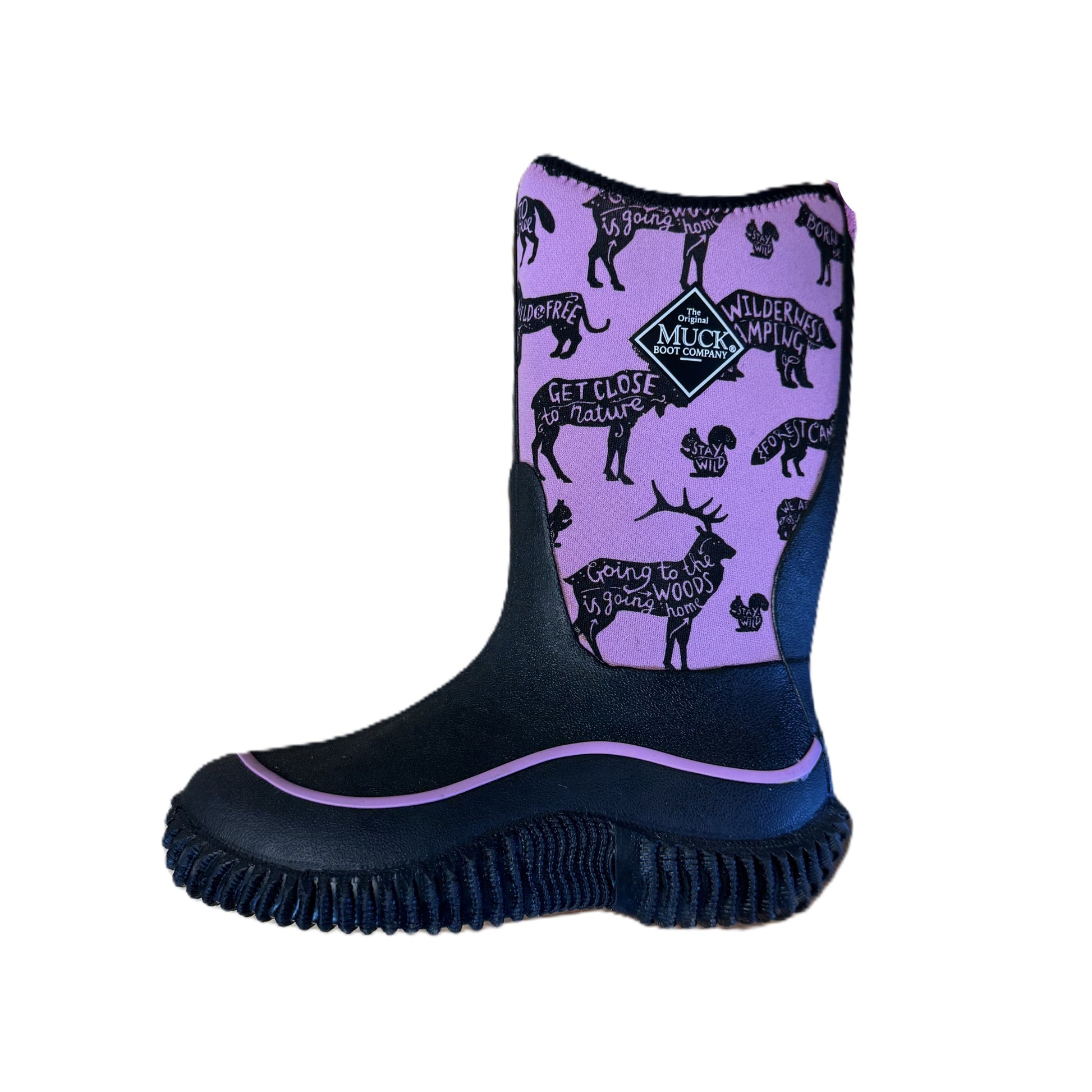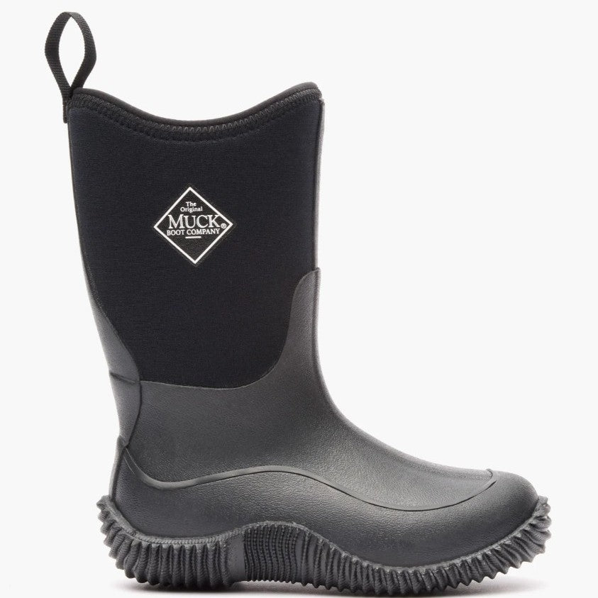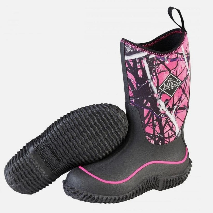 Keep children's feet protected from wet, rainy weather and muddy conditions in Muck Hale Multi-Season Kids' Rubber Boots. Comfort rated from subfreezing to 65°F (18°C), these children's boots are crafted from soft, flexible, heat-retaining CR Flex-Foam neoprene for reliable three season wear. The extended high-grade rubber exterior provides additional toughness and waterproofing, The durable ribbed outsole is self cleaning for stability on slick sidewalks, and it also wraps around the boot for extra grip. These neoprene boots have a back tab and wide opening that make them easy to pull on and off without fuss, while the inner PM Mesh lining keeps active feet cool and dry. These kids' boots are easy to match with just about any outfit.