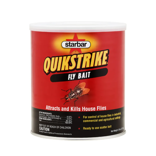 House flies can't resist something new and different. Contains new EPA-approved, active ingredient dinotefuran which kills house flies quickly and controls those resistant to organophosphates and carbonates. Contains Z-9 tricosene to attract flies to bait. Quick Strike Scatter Bait kills 7 times more house flies (*based on treating carbamate-resistant fly populations). Can use in rotation program with Golden Malrin.