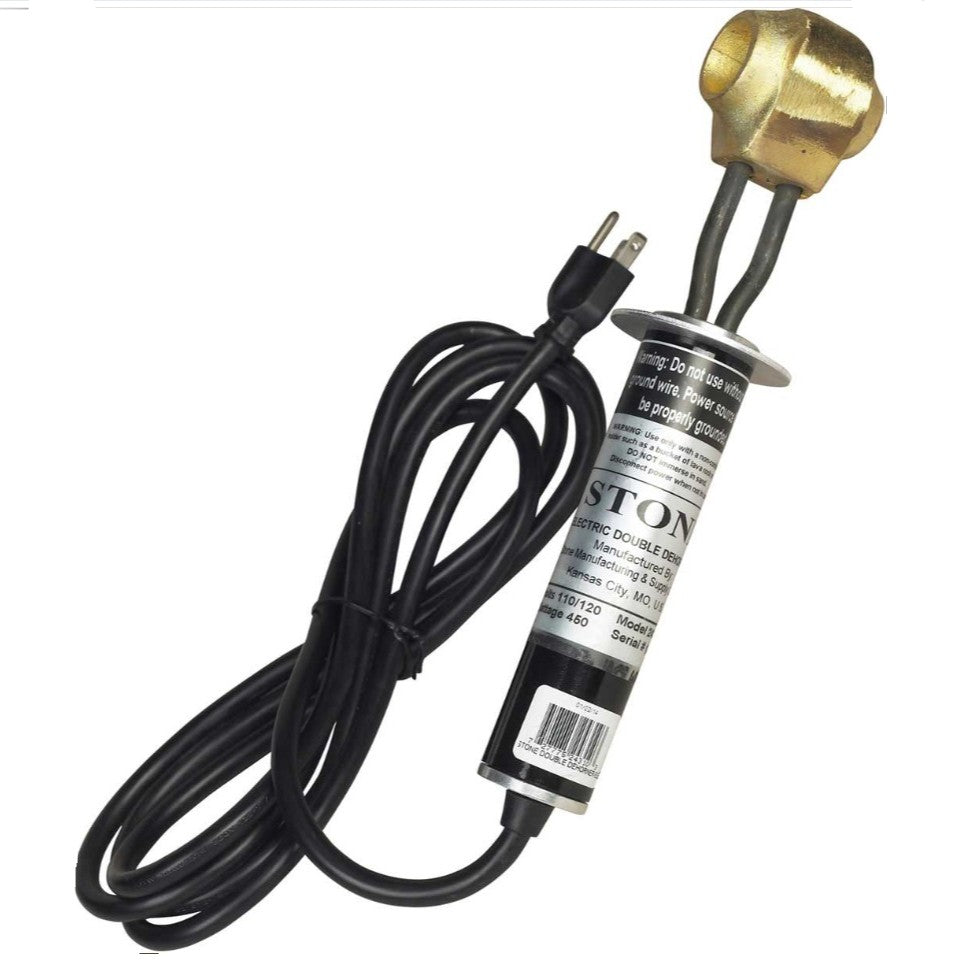 Saves time - one instrument handles newborns 3-10 days old; flip it over for larger calves up to 12 weeks (some breeds up to 6 months). Solid brass heating element has long life and stays hotter longer. Inside diameters – 3/4" and 1". 110V, 450W.