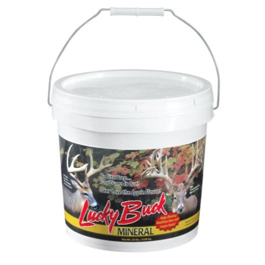 Grow huge bucks with antlers most hunters only dream about. Apple flavoring and essential minerals make this product highly desirable and beneficial to deer. A special ingredient keeps deer from overeating, greatly extending the life of every bucket. Rain and snow won't spoil this product, and it's very easy to use. Just dump it on a stump, log or directly on the ground and you are on your way to producing the largest-racked bucks possible. For best results, Lucky Buck Mineral should be used all year, so stock up to avoid running out! Usage will be greatest in the spring your bucks should have all they want while their racks are growing.