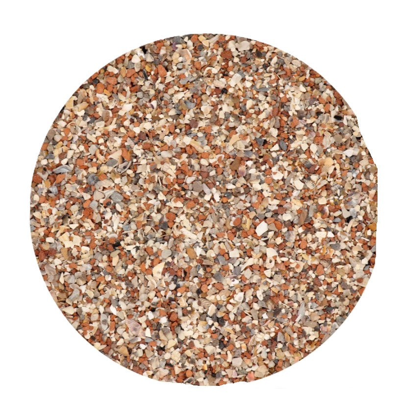 Colombine Grit + Redstone contains stomach gravel, silex stones, oyster shells, seashells, redstone and charcoal. Stomach gravel and silex stones are the pigeon's teeth.